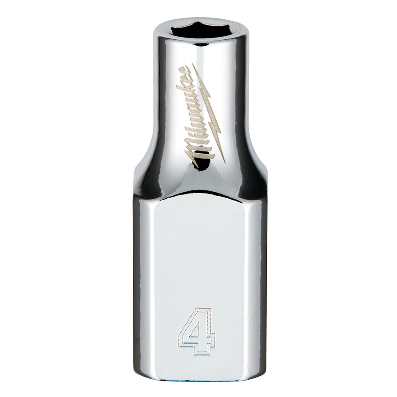 Our 1/4 in. Drive 6-Point Sockets with FOUR FLAT Sides are designed from the ground up to be part of the most versatile socket family. Milwaukee sockets feature an innovative design with four parallel flat sides, which deter rolling and are wrench-compatible. The socket sizes are stamped into the flats providing you with improved, easy-to-read visibility. These deep and standard socket sizes have optimized geometry to reduce bolt rounding and stripping. We back all our sockets with a lifetime guarantee.