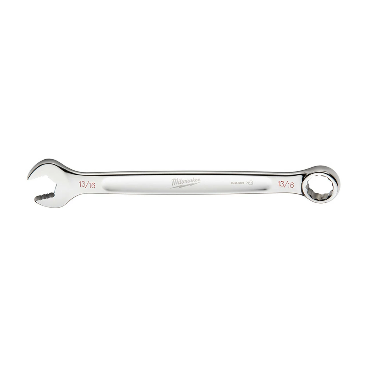 Our SAE Combination Wrenches provide you with 25 Percent more torque than smooth-faced wrenches with our innovative MAXBITE Open-End Grip. In addition to increased torque, MAXBITE also reduces the rounding and stripping of nuts and bolts. Our ergonomic wrench features an I-Beam handle for optimized comfort and durability. Ink-filled size labels allow for easy size identification and quick distinction between SAE and metric sets. The Milwaukee SAE wrench sizes range from 1/4 in.-1 in. and feature a Lifetime Guarantee.
