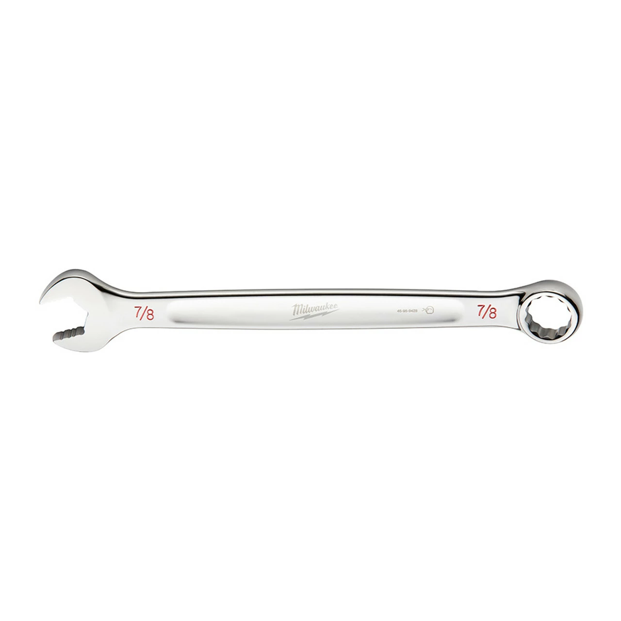 Our SAE Combination Wrenches provide you with 25 Percent more torque than smooth-faced wrenches with our innovative MAXBITE Open-End Grip. In addition to increased torque, MAXBITE also reduces the rounding and stripping of nuts and bolts. Our ergonomic wrench features an I-Beam handle for optimized comfort and durability. Ink-filled size labels allow for easy size identification and quick distinction between SAE and metric sets. The Milwaukee SAE wrench sizes range from 1/4 in.-1 in. and feature a Lifetime Guarantee.