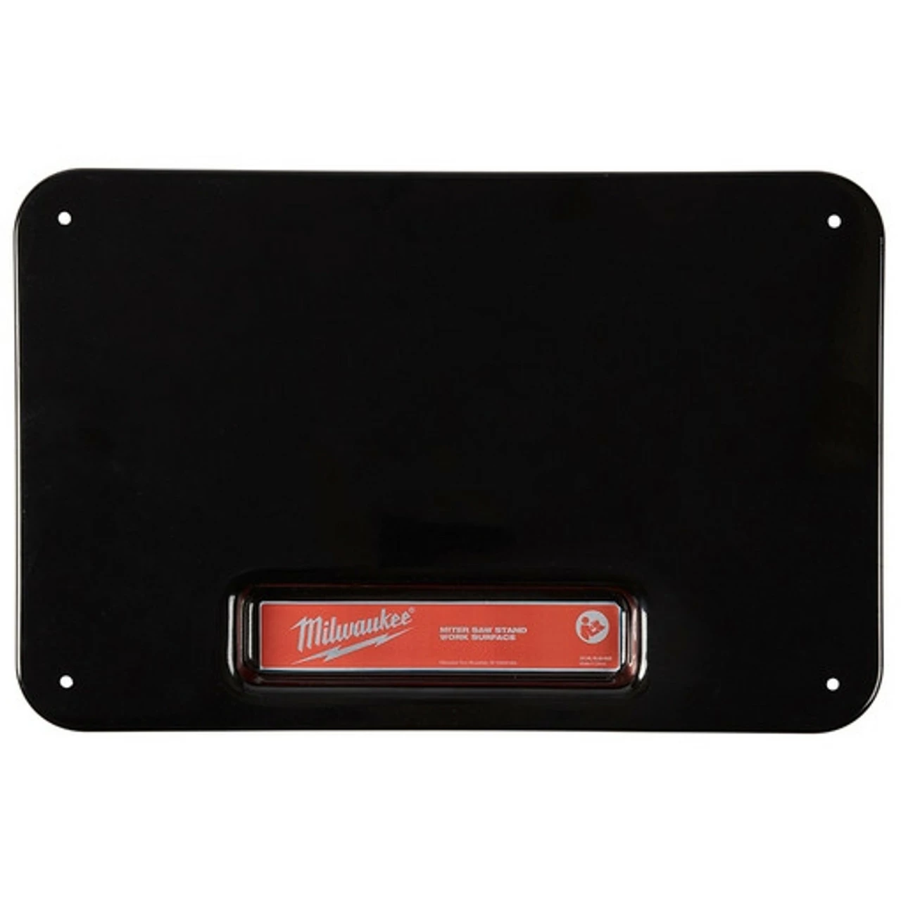 Designed to be used with the Milwaukee Folding Miter Saw Stand (48-08-0551), the table top allows users to keep items like pencils, tapes, blue prints and other items close at hand. It also service as a work space to perform addition tasks like sanding, coping or routing. The table top features solid metal construction for jobsite durability. It also features a recessed tray to hold pencils, pens and items that might roll off the table.