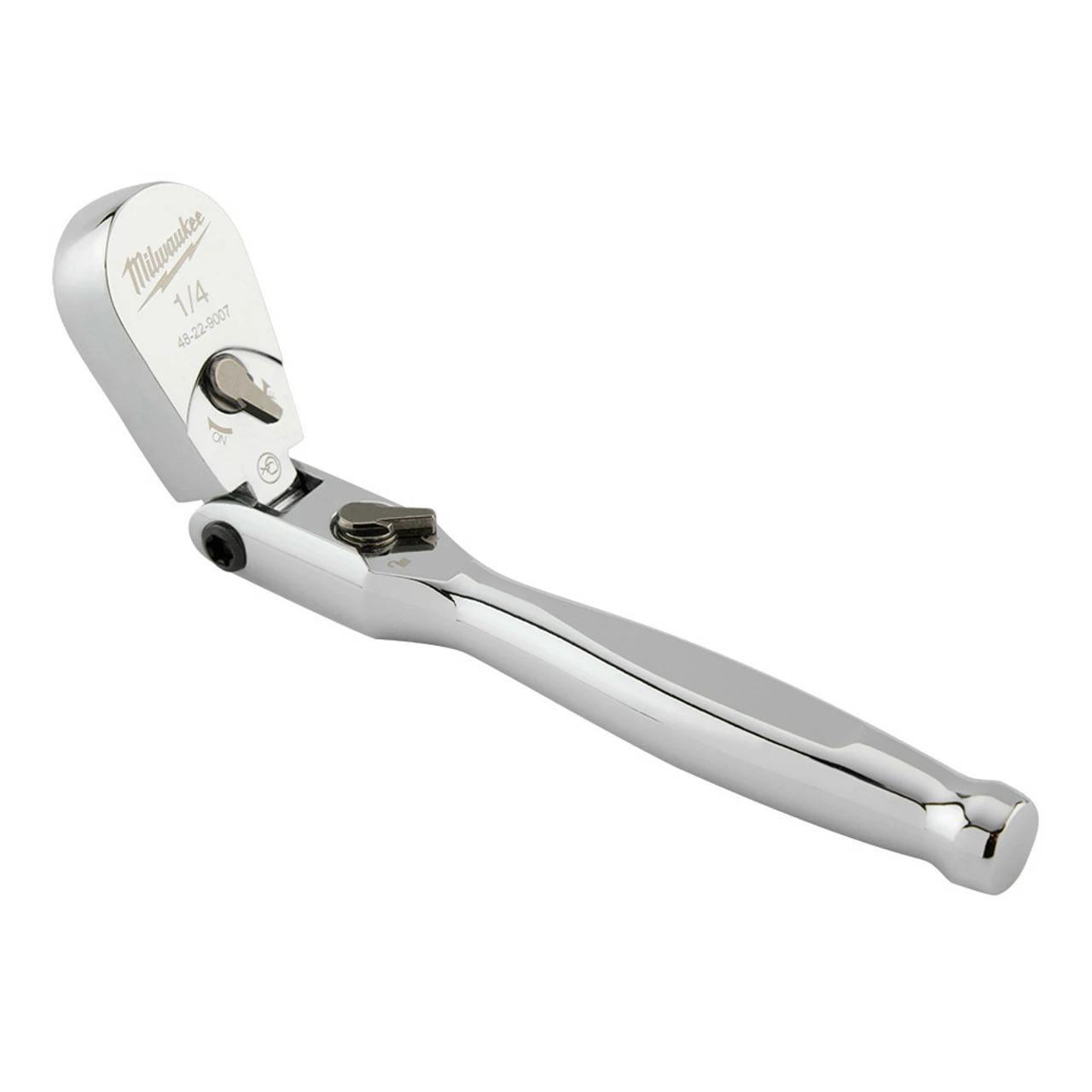 Our 1/4 in. Drive 6 in. Flex Head Ratchet with a 4 Degree arc swing provides you with better access and is more adaptable to working in spaces with different angles. The ratchet head can be locked into 7 unique positions or left unlocked for free movement during use. The slim profile head and flush directional and locking levers offer more accessibility in tight spaces. The all-chrome finish makes cleaning the Milwaukee flex head ratchet easy. We back this ratchet with our Mechanics Hand Tools Lifetime Guarantee.