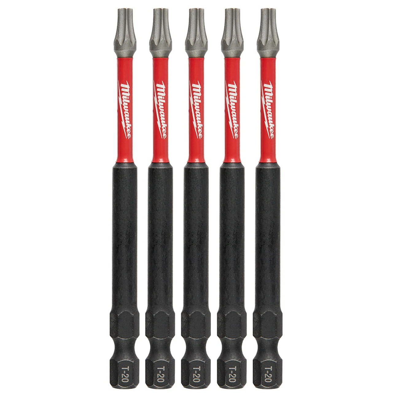 Milwaukee SHOCKWAVE 3-1/2 Impact TORX Recess T20 Power Bits 5 Pk