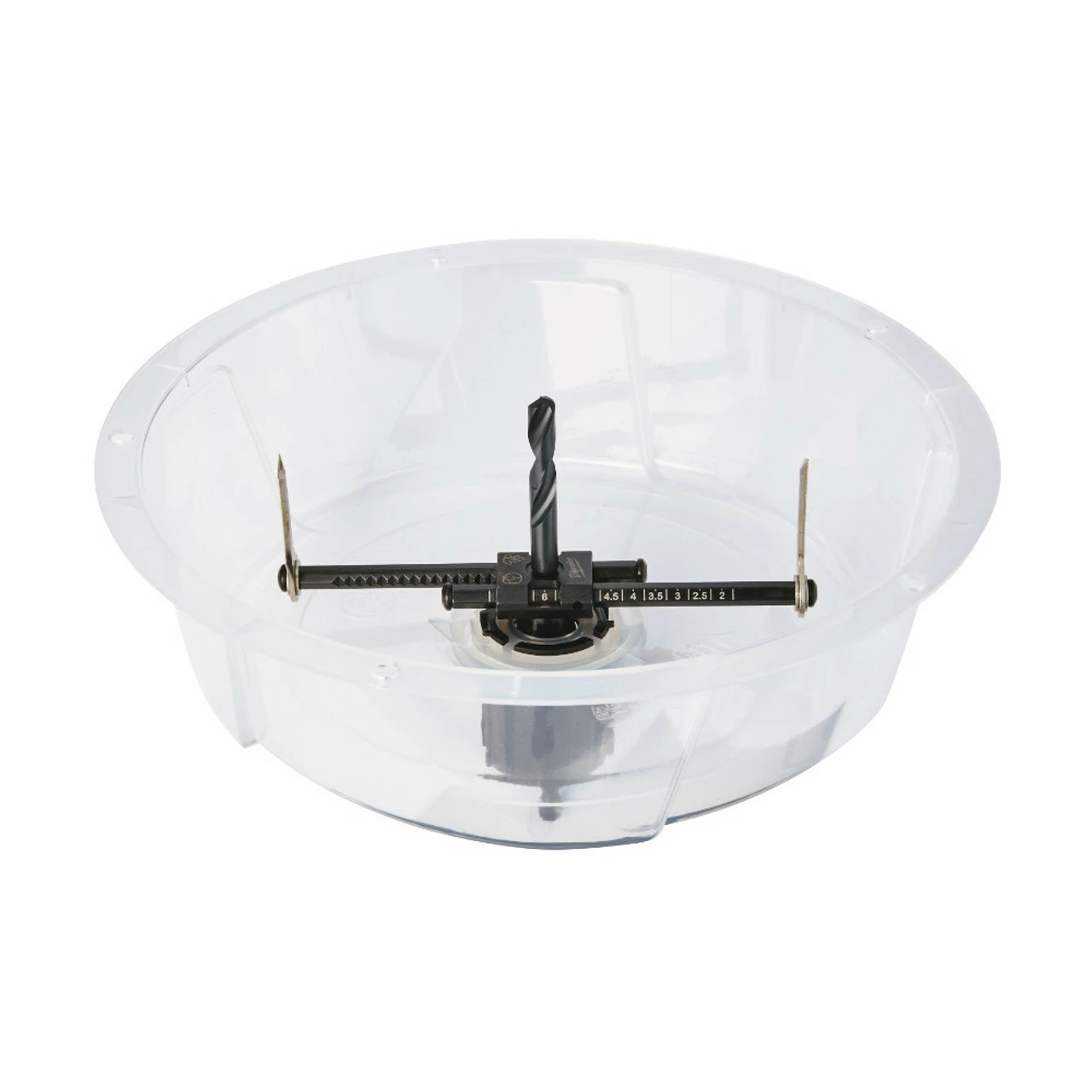The Milwaukee Adjustable Hole Cutter offers a one-size-fits all solution to make holes in drywall and ceiling tile. Cutting diameters range from 2 in. through 7 in. with 1/4 in. increments for almost double the amount of sizes over the competition. Utilizing a Quik-Lok arbor for tool-free adjustability as well as laser etched markings and size indicator, users can quickly and easily identify and change sizes without the use of a hex key. A best-in-class durable and reusable debris shield with spring collar keeps cutting blades level and work areas clean, especially in over-head cutting applications. Choose the Milwaukee Adjustable Hole Cutter for applications in drywall and ceiling tiles including: recessed lights, audio speakers, fire/security systems, and clearance holes.