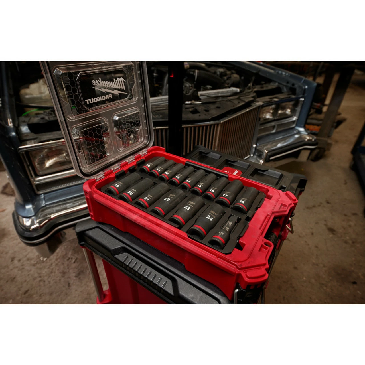 - Optimized for use with 1/2 in. drive impact wrenches, drivers, ratchets, and adapters Set comes in PACKOUT Organizer