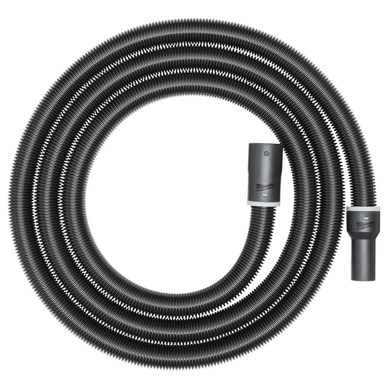 Our 1-7/8 in. x 16 ft. Flexible Hose delivers unmatched durability and flexibility to survive the jobsite. Its two-part design allows for durable and crush-resistant construction to prevent tears that lead to downtime on the jobsite. The anti-static hose material helps prevent static buildup when cleaning fine particles. The high-performance swivel mechanism and hose material create more flexibility and ease of use during cleaning, preventing the hose from getting bound up or kinked while you move around. The dedicated custom rubber gasket improves airflow and performance when in use. This Milwaukee flexible vacuum hose has extended length compared to included stock hose (49-90-1996) and includes a gray color ring for quick identification of its 1-7/8 in. diameter.